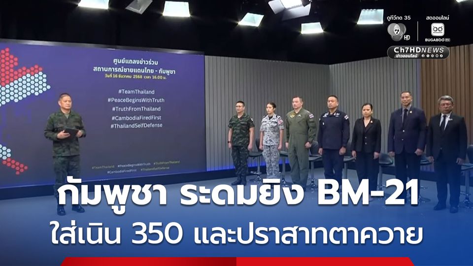 16 ธันวาคม 2568 เวลา 16.00 น. พลเรือตรี สุรสันต์ คงสิริ โฆษกกระทรวงกลาโหม พร้อมด้วยผู้แทนจากกระทรวงการต่างประเทศ ตำรวจ กองทัพบก กองทัพอากาศ และกองทัพเรือ ร่วมแถลงสรุปสถานการณ์ความขัดแย้งบริเวณชายแดนไทย-กัมพูชา ที่ยังคงมีความตึงเครียด และมีการปะทะกันอย่างต่อเนื่อง
