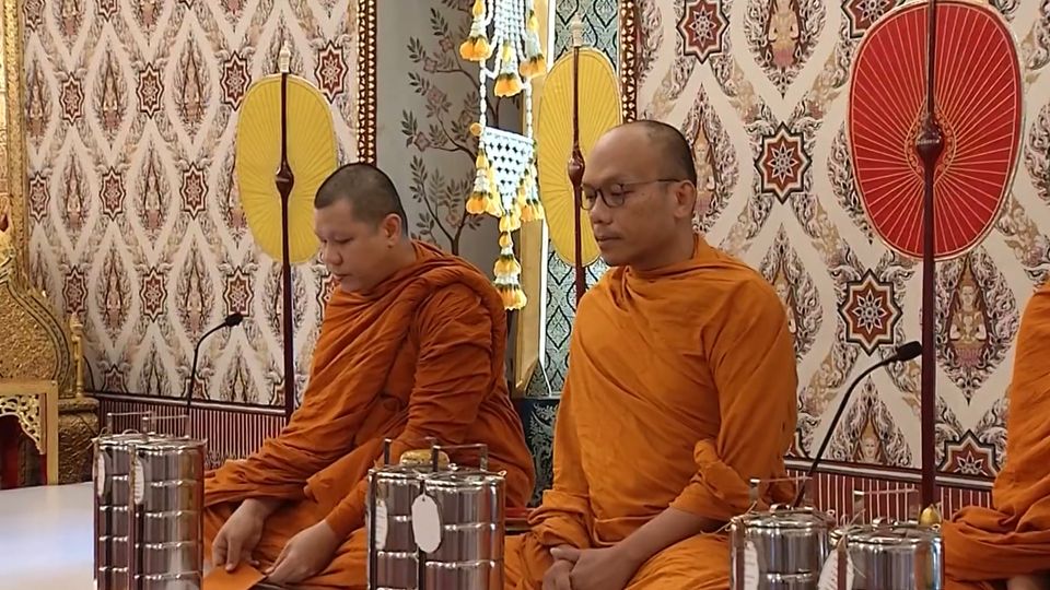 ในการนี้ ทรงประเคนภัตตาหารเช้า แด่พระพิธีธรรม ที่สวดพระอภิธรรมพระบรมศพ สมเด็จพระนางเจ้าสิริกิติ์ พระบรมราชินีนาถ พระบรมราชชนนีพันปีหลวง ซึ่งเป็นพระพิธีธรรมจากวัดอนงคาราม และวัดราชสิทธาราม