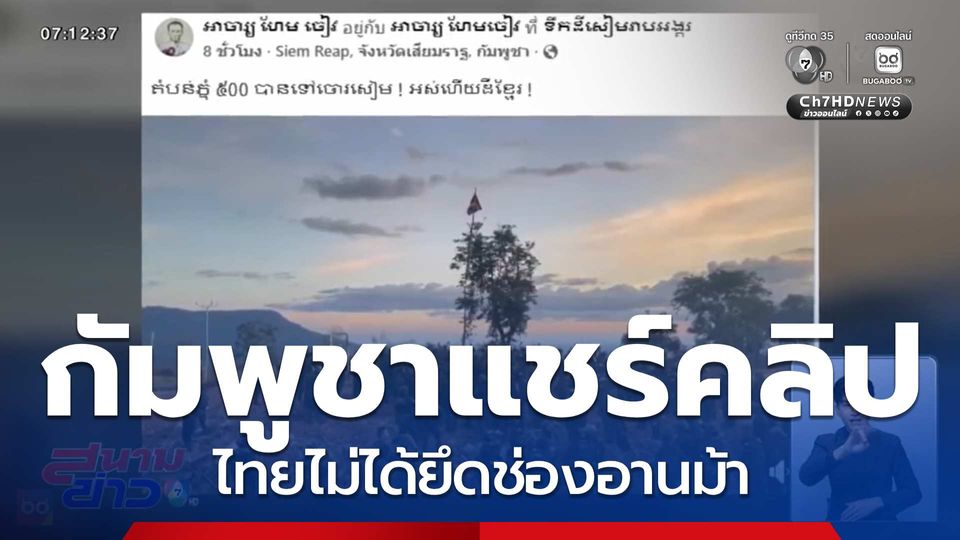 สนามข่าว 7 สี - เมื่อวานนี้ หลังจากทหารกล้าของไทย ยึดสมรภูมิรบช่องอานม้าได้ 100 เปอร์เซ็นต์ พร้อมกับร้องเพลงชาติดังกึกก้อง แต่คนเขมรกลับโพสต์แชร์คลิปนี้ในโซเชียลฯ รัว ๆ บอกว่าไม่เป็นความจริง