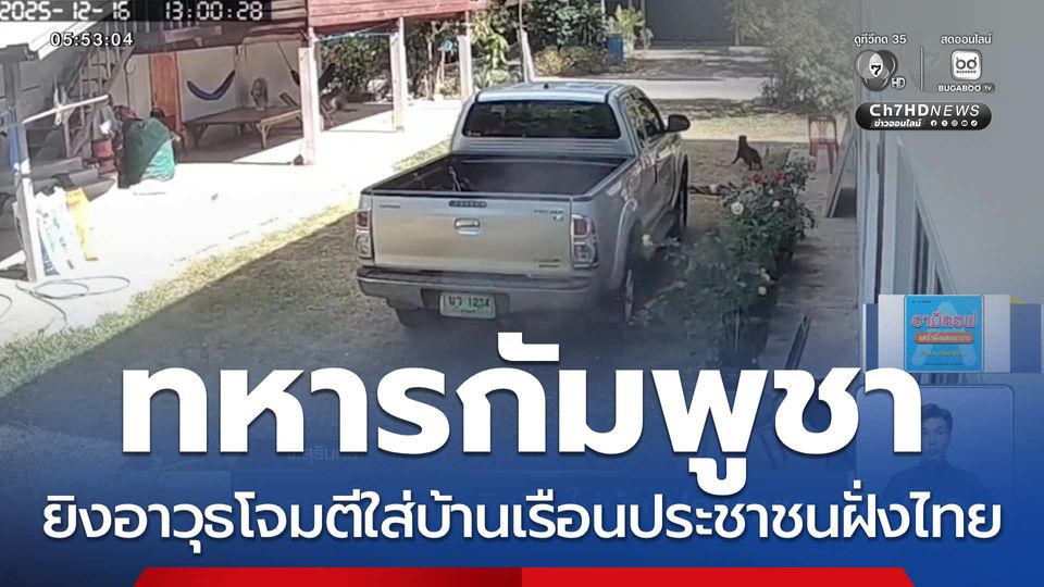 เช้านี้ที่หมอชิต - สถานการณ์ชายแดนสุรินทร์ เมื่อวานนี้มีคลิปหลักฐานจากกล้องวงจรปิดชัดเจนว่าฝั่งทหารกัมพูชา ยิงอาวุธโจมตีใส่บ้านเรือนประชาชนฝั่งไทย ในพื้นที่ อำเภอกาบเชิง