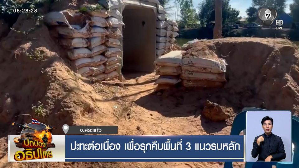 เช้านี้ที่หมอชิต - สถานการณ์ชายแดนไทย-กัมพูชา ด้านจังหวัดสระแก้ว ยังคงตึงเครียด ตลอดทั้งวันเมื่อวานยังมีการปะทะอย่างหนักหน่วงต่อเนื่อง เพื่อรุกคืบ 3 แนวรบหลัก ๆ พื้นที่บ้านคลองแผง อำเภอตาพระยา, บ้านหนองหญ้าแก้ว และบ้านหนองจาน อำเภอโคกสูง เพื่อรุกคืบพื้นที่ และปกป้องอธิไตยกลับคืนมา