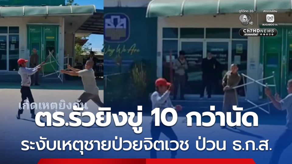 ระทึกดอนจาน ชาวบ้านแตกตื่น ชายป่วยจิตเวช ถือไม้คมแฝกป่วน ธ.ก.ส. ตำรวจรัวยิงปืนขู่กว่า 10 นัด ระงับเหตุ ไม่ยอมหยุด ปรี่จะทำร้าย ต้องยิงเข้าที่แขนเจ็บ ก่อนควบคุมตัวดำเนินคดี