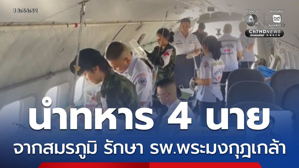 ข่าวเย็นประเด็นร้อน - ขณะเดียวกัน มีทหารได้รับบาดเจ็บหลายนาย เเละล่าสุดวันนี้ กองทัพบกเคลื่อนย้ายทหาร 4 นาย ที่ได้รับบาดเจ็บจากโรงพยาบาลปราสาท จังหวัดสุรินทร์ส่งโรงพยาบาลพระมงกุฎเกล้า