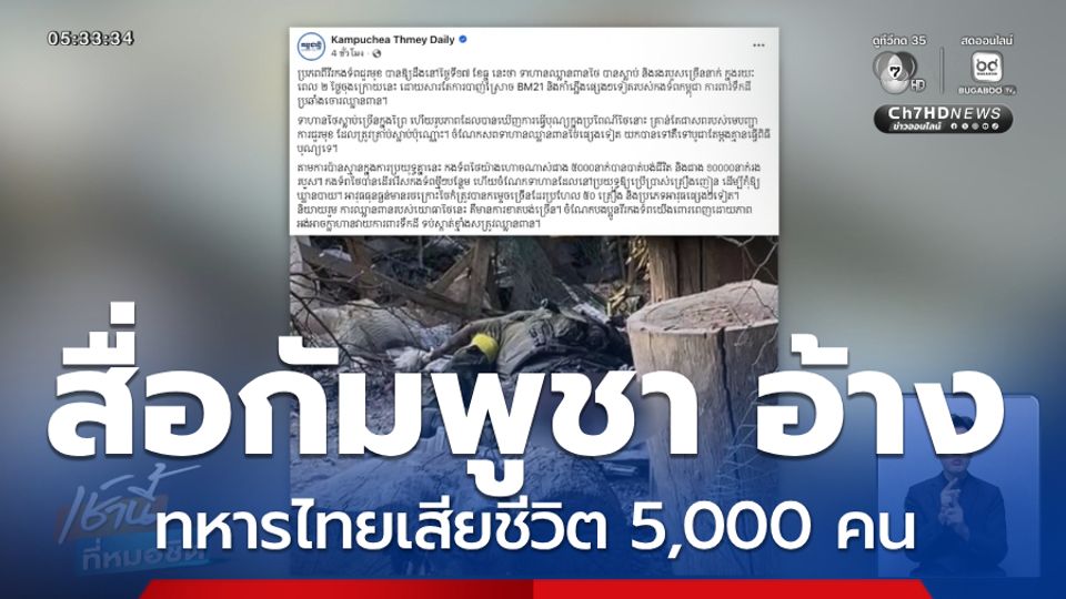 สื่อกัมพูชา อ้าง ทหารไทยเสียชีวิต 5,000 คน