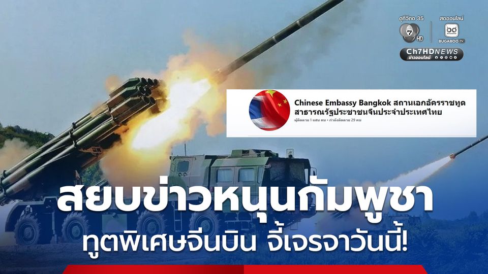 หลังจากทหารไทยยึดพื้นที่กัมพูชาพบขีปนาวุธจีน ล่าสุด ค่ำวานนี้ (17 ธ.ค.68) สถานเอกอัครราชทูตสาธารณรัฐประชาชนจีนประจำประเทศไทย โพสต์ข้อความ ย้ำถึงจุดยืนของจีนต่อสถานการณ์สู้รบชายแดนไทยกัมพูชา ที่พยายามไกล่เกลี่ยและส่งเสริมการเจรจาอย่างต่อเนื่อง โดยวันนี้ (18 ธ.ค.) ทูตพิเศษด้านกิจการเอเชียของกระทรวงการต่างประเทศจีน จะลงพื้นที่กัมพูชาและไทยอีกครั้ง เพื่อไกล่เกลี่ยการปะทะ ช่วยคลี่คลายความตึงเครียดและบรรเทาสถานการณ์