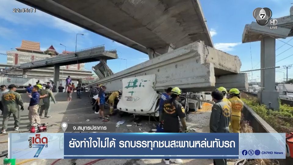 ประเด็นเด็ด 7 สี - สะพานลอยหล่นทับรถ ช่วงถนนบางนา กิโลเมตรที่ 34 ในจังหวัดสมุทรปราการ