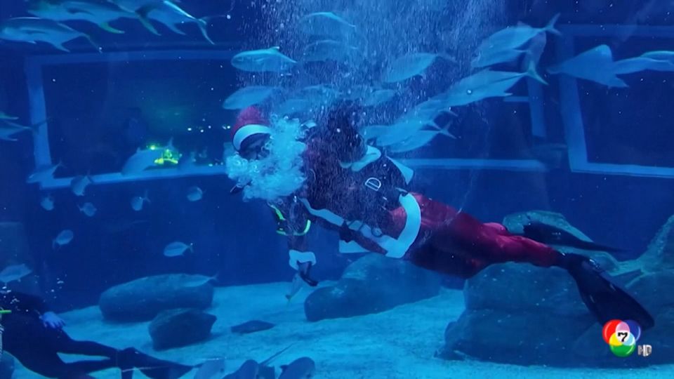 ชมภาพสีสันต้อนรับเทศกาลคริสต์มาสที่กำลังจะมาถึง โดยซานตาคลอสที่บราซิล ดำน้ำทักทายนักท่องเที่ยวในพิพิธภัณฑ์สัตว์น้ำที่ใหญ่ที่สุดในอเมริกาใต้