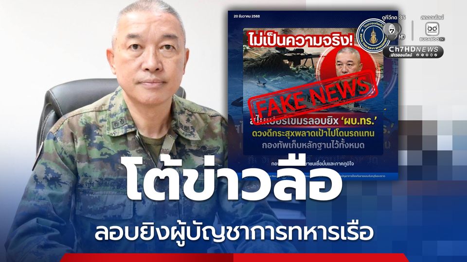 โฆษกกองทัพเรือ โต้ข่าวลือลอบยิงผู้บัญชาการทหารเรือ ชี้ ข้อมูลบิดเบือน สร้างความสับสน ขอประชาชนตรวจสอบข้อมูลก่อนส่งต่อ หวั่นกระทบความมั่นคง