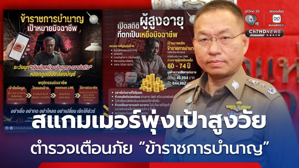 สำนักงานตำรวจแห่งชาติ เตือนภัย “ข้าราชการบำนาญ” เดือน ธ.ค. สแกมเมอร์พุ่งเป้าสูงวัย อุบายอัปเดตข้อมูล รับสิทธิ ลวงติดตั้งแอปพลิเคชันควบคุมโทรศัพท์ หลอกโอนเงินสูญนับล้าน