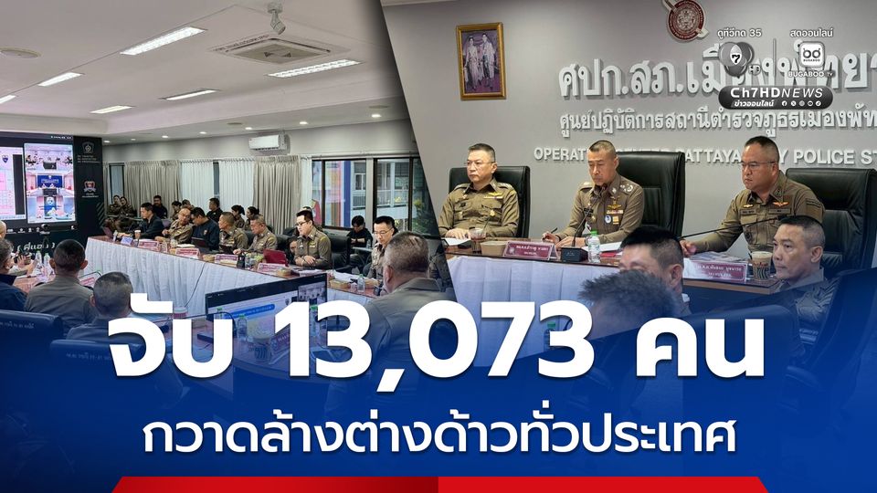 ยกระดับรักษาความสงบเรียบร้อยและความมั่นคงของชาติ ตำรวจปูพรมกวาดล้างคนต่างด้าวกระทำผิดกฎหมายทั่วประเทศ ค้น 13,394 เป้าหมาย จับ 13,073 คน ส่วนใหญ่เป็นความผิดปฏิเสธคนเข้าเมือง 6,500 คดี