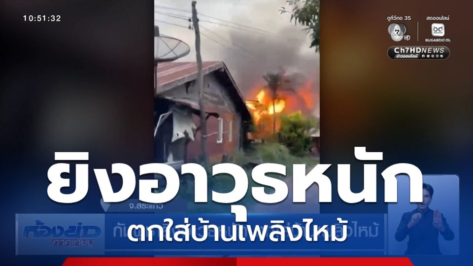 ห้องข่าวภาคเที่ยง - ชายแดนไทย-กัมพูชา พื้นที่ จังหวัดสระแก้ว ตึงเครียดตั้งแต่เช้า กองกำลังฝ่ายกัมพูชา ยิงอาวุธหนักตกในชุมชน อำเภอโคกสูง มีบ้านเรือนของชาวบ้านได้รับความเสียหาย บางหลังเพลิงไหม้