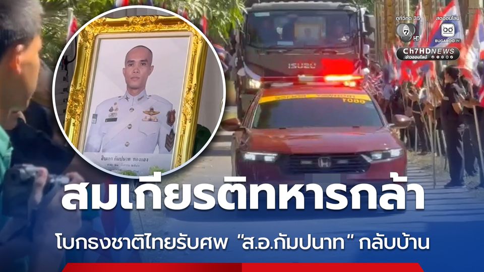 วันนี้ (23 ธ.ค.68) ญาติ ครอบครัว รวมถึงชาว จ.ชัยภูมิ ร่วมโบกสบัดธงชาติไทย สดุดีทหารกล้า ส.อ.กัมปนาท ทองแสง หรือนนท์ ทหารเสือราชินี รายที่ 22 ผู้สละชีพกลางสมรภูมิชายแดนไทย-กัมพูชา เมื่อวานผ่านมา(22 ธ.ค. 68) ลูกหลานเจ้าพ่อพญาแล กลับสู่มาตุภูมิ โดยกองพันทหารราบ มทบ.21 ได้นำร่าง ส.อ.กัมปนาท เดินทางโดยฮลิคอปเตอร์ ลงสู่สนามโรงเรียนละหานเจริญวิทยา อ.จัตุรัส จ.ชัยภูมิ