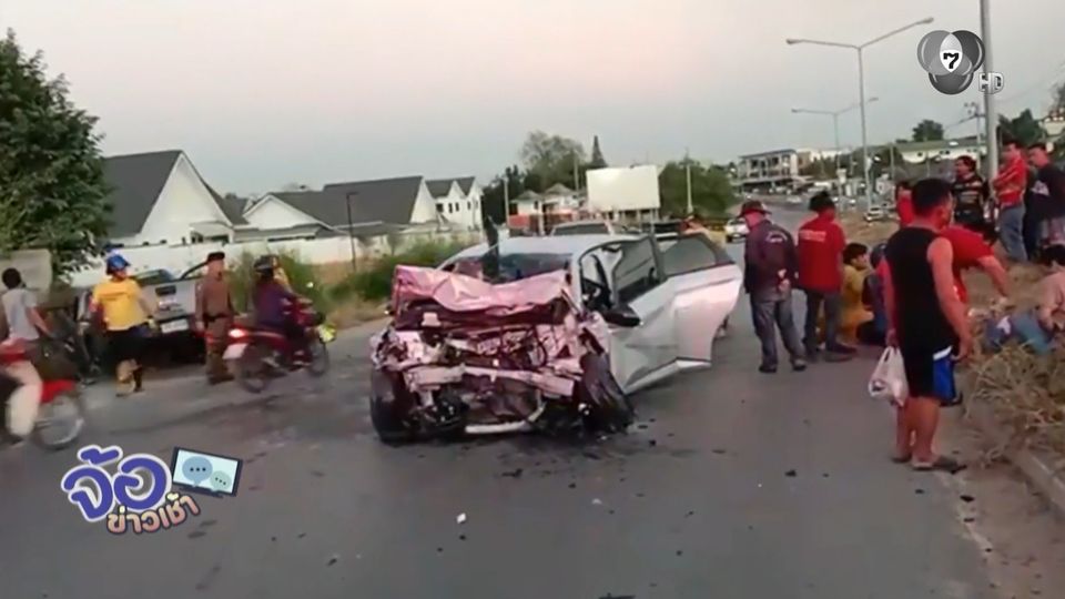 จ้อข่าวเช้า - หลับในหรือหลุดโค้ง ชนเจ็บ 5 คน