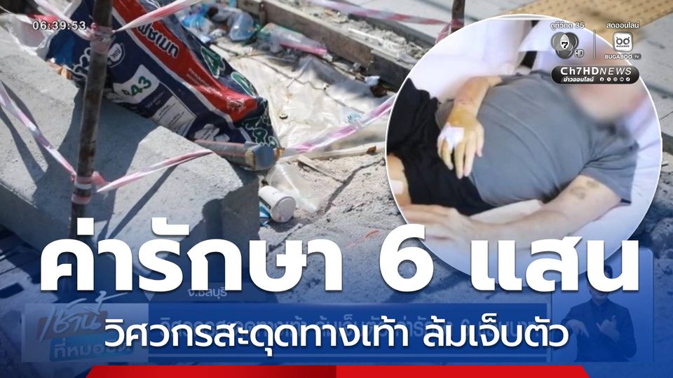 เช้านี้ที่หมอชิต - ที่จังหวัดชลบุรี วิศวกรเครื่องบินชาวอเมริกา สะดุดทางเท้าที่กำลังก่อสร้างกลางเมืองพัทยา ได้รับบาดเจ็บสาหัส เสียค่ารักษา 600,000 บาท ไม่มีหน่วยงานเหลียวแล