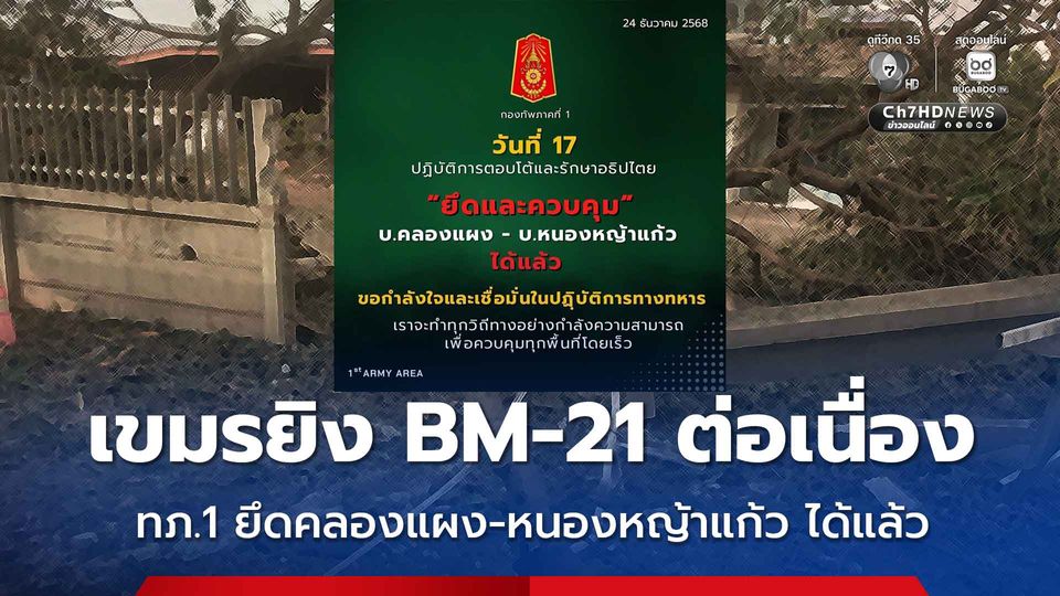 เข้าสู่วันที่ 17 ปฏิบัติการตอบโต้และรักษาอธิปไตยชายแดนสระแก้ว กองทัพภาคที่ 1 ยึดและควบคุมบ้านคลองแผง-บ้านหนองหญ้าแก้ว ได้แล้ว ฝ่ายกัมพูชายังโจมตีด้วย BM-21 อย่างต่อเนื่อง
