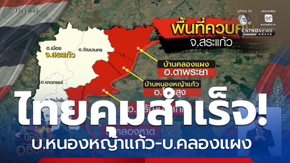 ห้องข่าวภาคเที่ยง - ปะทะเดือดแนวชายแดนไทย-กัมพูชา จังหวัดสระแก้ว 1 แนวรบ ยึดพื้นที่คืนได้ เดินหน้าสถาปนาที่มั่น ตามต่ออีก 2 แนวรบ หลังกัมพูชายิงใส่พื้นที่ประชาชนต่อเนื่อง