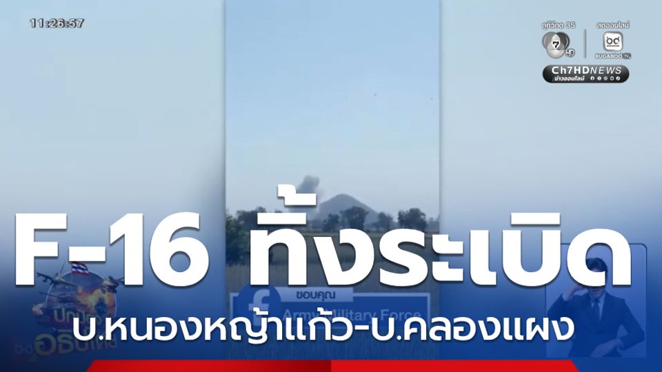 ห้องข่าวภาคเที่ยง - เครื่องบินรบขับไล่ F-16 ของกองทัพอากาศไทย ออกปฏิบัติการโจมตีทางอากาศอีกครั้ง โจมตีใส่เป้าหมายคลังอาวุธของกองทัพกัมพูชา ในพื้นที่จังหวัดพระตะบอง