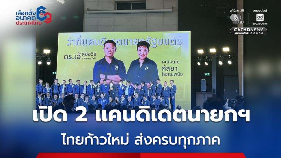 “ดร.เอ้ – คุณหญิงกัลยา” นั่งแคนดิเดตนายกฯ พรรคไทยก้าวใหม่ ส่ง สส.ทั้งแบบเขต-บัญชีรายชื่อ ครบทุกภาค ชู “เลิกทน-เลิกจน-เลิกจม กับการเมืองเดิม ๆ ความขัดแย้งเดิม ๆ คนเดิม ๆ รีเซ็ตระบบการศึกษา เรียนฟรี ป.ตรี ยัน ป.เอก ประกาศยกเลิกหนี้ กยศ. เดินหน้าปราบคอร์รัปชันที่ต้นตอ