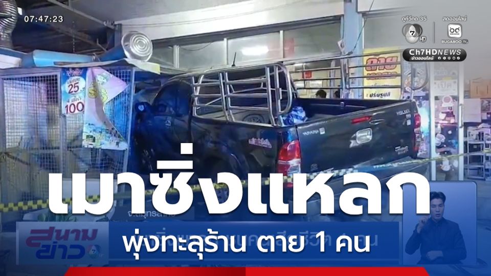 สนามข่าว 7 สี - ชายเมียนมาเมาแล้วขับ เสียหลักชนรถจักรยานยนต์ พุ่งทะลุร้านขายของ มีผู้เสียชีวิต 1 คน