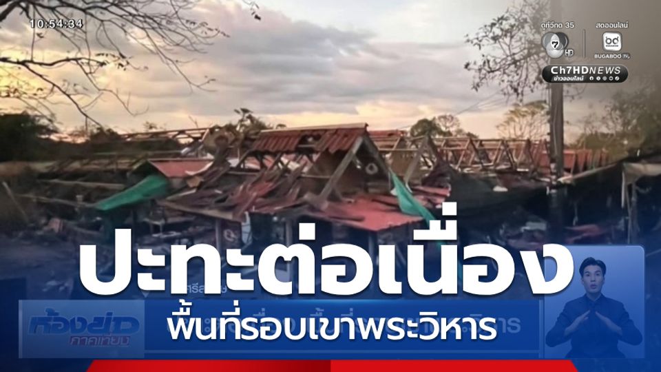 ห้องข่าวภาคเที่ยง - เข้าสู้การสู้รบวันที่ 18 พื้นที่จุดนี้ที่ยังมีการปะทะกันอย่างหนัก คือบริเวณชายแดนเขาพระวิหาร ภูมะเขือ และห้วยตามาเรีย ล่าสุดเมื่อเย็นวานนี้มีตำรวจตระเวนชายแดนได้รับบาดเจ็บไป 1 นาย