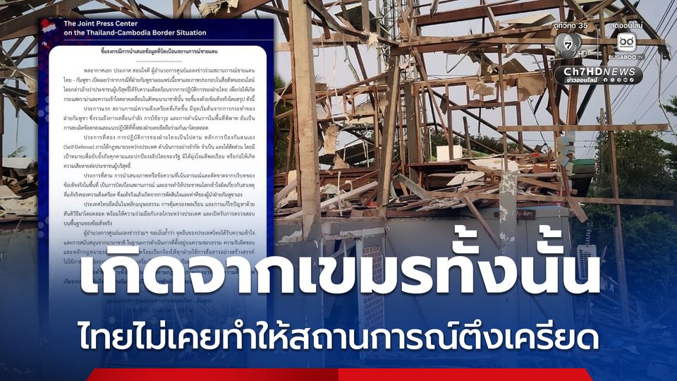 ผอ.ศูนย์แถลงข่าวร่วมฯ ย้ำว่า จุดยืนของประเทศไทยได้รับความเข้าใจ และการสนับสนุนจากนานาชาติ ในฐานะการดำเนินการที่ตั้งอยู่บนความชอบธรรม ความรับผิดชอบและหลักกฎหมายระหว่างประเทศ พร้อมเรียกร้องให้ทุกฝ่ายใช้การสื่อสารอย่างสร้างสรรค์ ไม่ใช้ภาพหรือเรื่องราวของพลเรือนเป็นเครื่องมือทางการเมืองหรือสงครามข่าวสาร