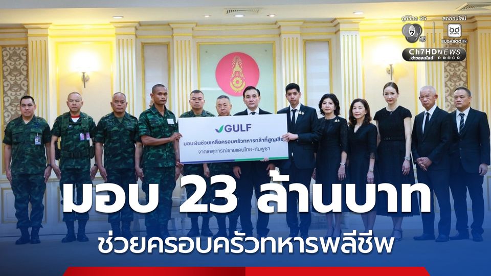 วันนี้ (25 ธ.ค.68) พลเอก ชัยพฤกษ์ ด้วงประพัฒน์ เสนาธิการทหารบก พร้อมด้วย พลเอกบุญสิน พาดกลาง ที่ปรึกษาผู้บัญชาการทหารบก และผู้บังคับบัญชาระดับสูง รับมอบเงินช่วยเหลือครอบครัวกำลังพลที่เสียชีวิตทั้ง 23 ครอบครัว จากเหตุปะทะชายแดนไทย - กัมพูชา ครอบครัวละ 1 ล้านบาท รวม 23 ล้านบาท จากนายสารัชถ์ รัตนาวะดี ประธานกรรมการบริหารของกัลฟ์ ดีเวลลอปเมนท์
