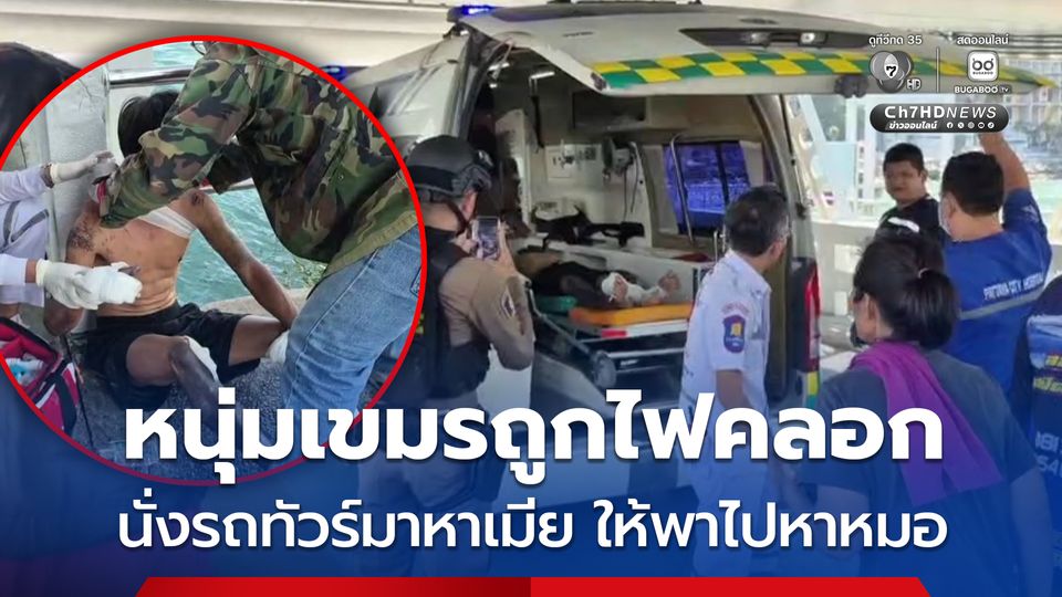 หนุ่มชาวกัมพูชาถูกไฟคลอกตัว 80% นั่งรถทัวร์จากหัวหินข้ามจังหวัดมาเมืองพัทยา เพื่อให้เมียคนไทยส่งไปหาหมอ