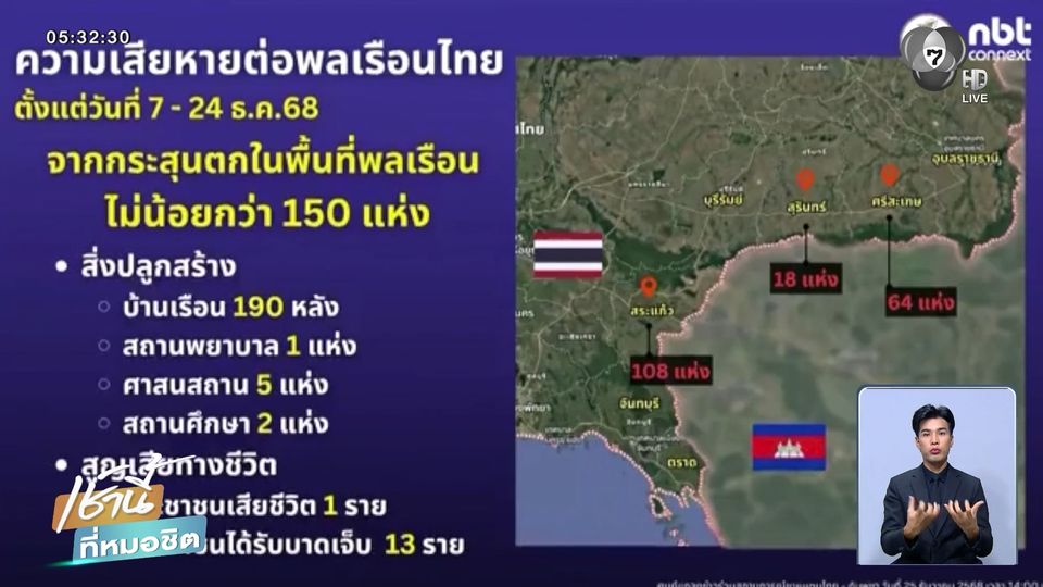 สถานการณ์สู้รบ "ไทย-กัมพูชา" วันที่ 18