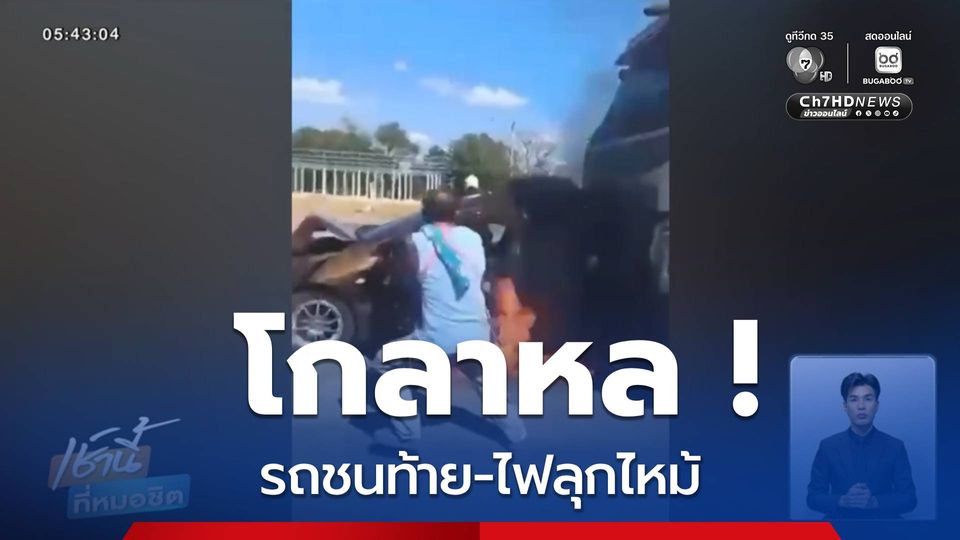 เช้านี้ที่หมอชิต - ที่บุรีรัมย์ เกิดเหตุระทึกกลางถนน รถบรรทุกห้องเย็น ชนท้ายรถเก๋งจนเพลิงลุกไหม้ มีคนติดในรถ พลเมืองดีช่วยกันโกลาหล