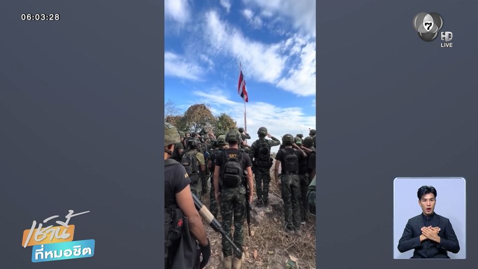 เช้านี้ที่หมอชิต - ติดตามสถานการณ์ชายแดนจังหวัดสุรินทร์ มีข่าวดี หลังทหารกล้าของไทยเรา สามารถยึดพื้นที่ยุทธศาสตร์สำคัญได้อีกจุด บริเวณเหนือเนิน 225 ปักธงชาติ พร้อมกับร้องเพลงชาติไทยดังกึกก้อง