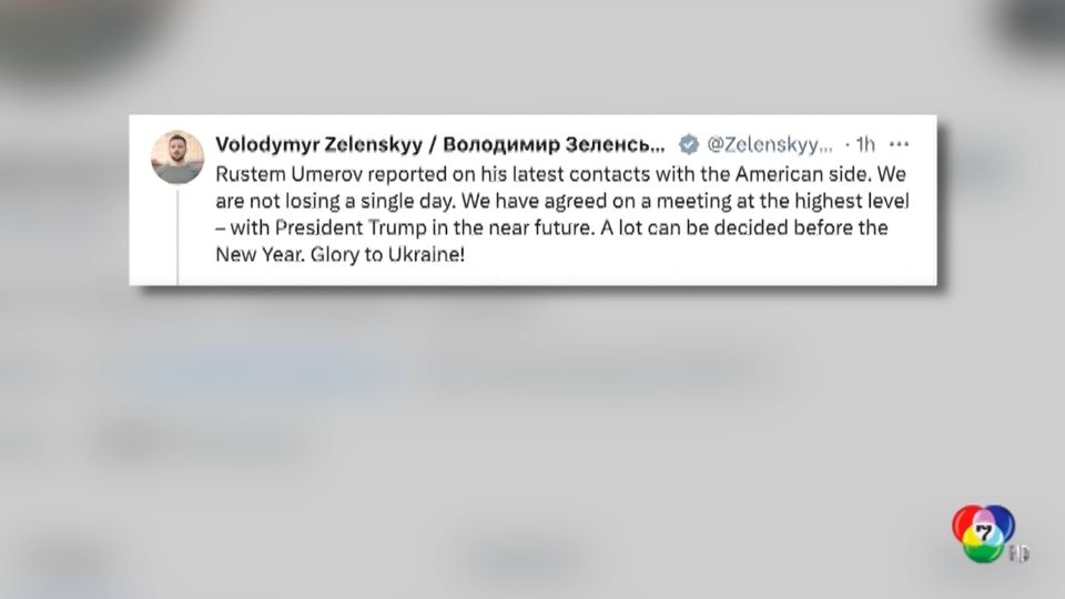 ประธานาธิบดี โวโลดีมีร์ เซเลนสกี ของยูเครน เปิดเผยว่า เขามีแผนจะพบกับประธานาธิบดี โดนัลด์ ทรัมป์ แห่งสหรัฐฯ เพื่อหารือเรื่องข้อตกลงหยุดยิงกับรัสเซีย ในเร็ว ๆ นี้ และอาจต้องตัดสินใจในประเด็นที่ละเอียดอ่อนหลายอย่างก่อนปีใหม่ ซึ่งเป็นส่วนหนึ่งในความพยายามทางการทูต เพื่อยุติสงครามกับรัสเซีย โดยประเด็นที่ละเอียดอ่อนที่กล่าวถึงนั้น รวมถึงการประนีประนอมใด ๆ เกี่ยวกับดินแดน