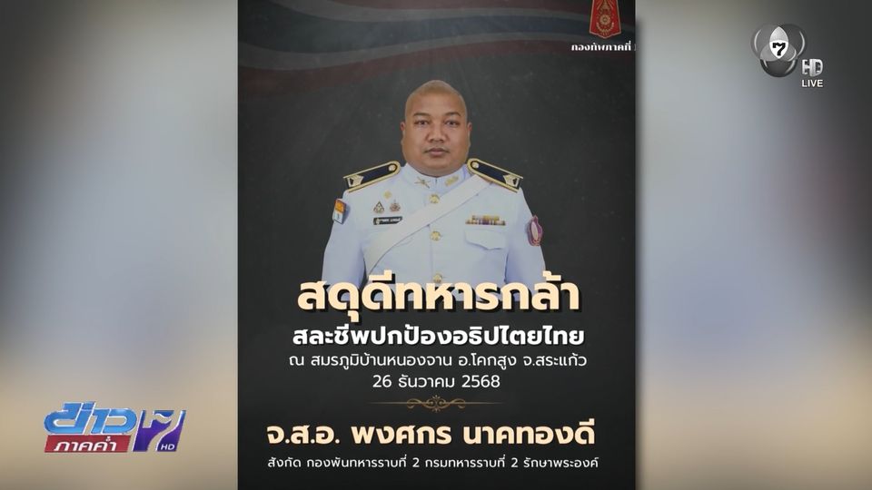 ข่าวภาคค่ำ - การลงนามในข้อตกลงหยุดยิงที่กำลังจะเริ่มขึ้นในพรุ่งนี้ แต่ช่วงเย็นที่ผ่านมาพื้นที่บ้านหนองจาน จังหวัดสระแก้ว กัมพูชายังกระหน่ำยิงโจมตีไทยไม่หยุด ล่าสุด มีทหารไทยพลีชีพเพิ่มอีก 3 นาย
