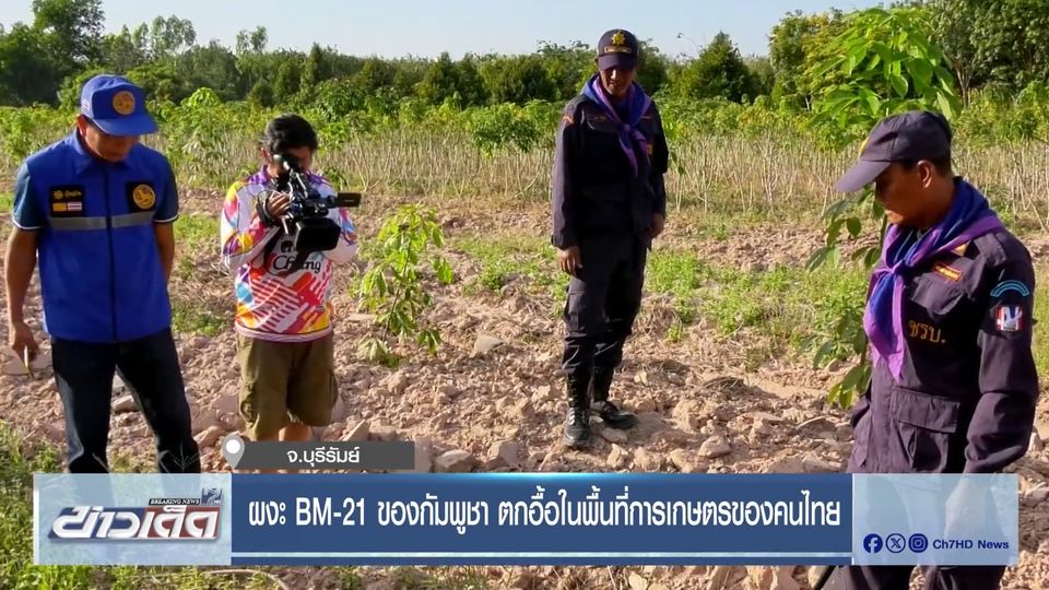 ข่าวเด็ด 7 สี - เจ้าหน้าที่เข้าสำรวจพื้นที่ทางการเกษตรของชาวบ้าน เฉพาะรายเดียว พบเศษลูกจรวดหลายลำกล้อง BM 21 ตกเกลื่อนถึง 14 ลูก