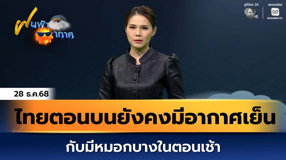 ไทยตอนบนยังคงมีอากาศเย็นถึงหนาวในตอนเช้า ติดตามใน ฝนฟ้าอากาศ กับ คุณนภัสกรณ์ เสรีโรจนสิริ