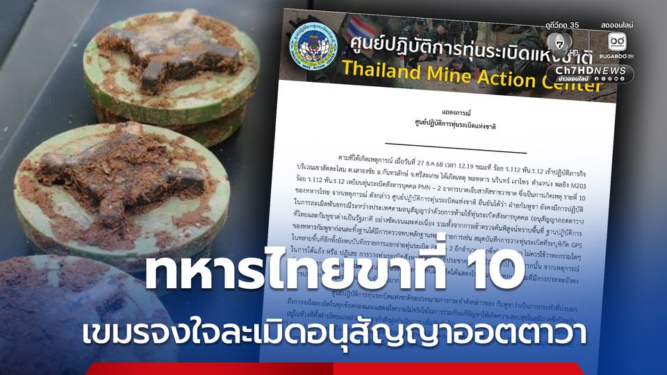 ฝ่ายกัมพูชา ไม่ควรใช้วาทะกรรมใด ๆ ในการโต้แย้งหรือปฏิเสธ โฆษกศูนย์ปฏิบัติการทุ่นระเบิดแห่งชาติ ประณามกัมพูชา ทหารไทยรายที่ 10 เสียขา เครื่องยืนยันกัมพูชาจงใจละเมิดอนุสัญญาออตตาวา