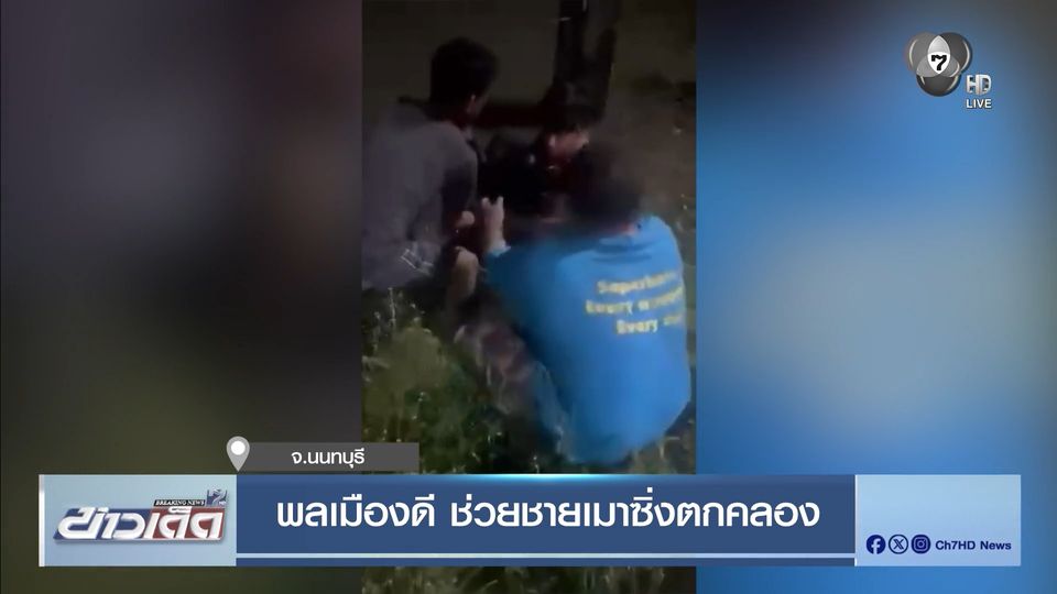 เหตุเกิด ถนนเลียบคลองตาชม อำเภอบางบัวทอง จังหวัดนนทบุรี พลเมืองดีบอกว่า ไม่ทันได้ถามชื่อพี่กู้ภัยที่เข้ามาช่วย วันนั้นที่ไม่ได้กระโดดลงไปช่วยทันที เพราะว่ายน้ำไม่เป็น ยังพบรองเท้า และจักรยานยนต์ของผู้บาดเจ็บ สภาพพังยับเยิน จอดอยู่ ที่รถยังมีข้าวเหนียวหมูปิ้งแขวนไว้ ส่วนบริเวณขอบทาง พบเศษชิ้นส่วนรถจักรยานยนต์แตกหักเสียหาย ล่าสุดได้ส่งต่อผู้บาดเจ็บไปรักษาตัวที่โรงพยาบาลพระนั่งเกล้า เพราะอาการวิกฤติ