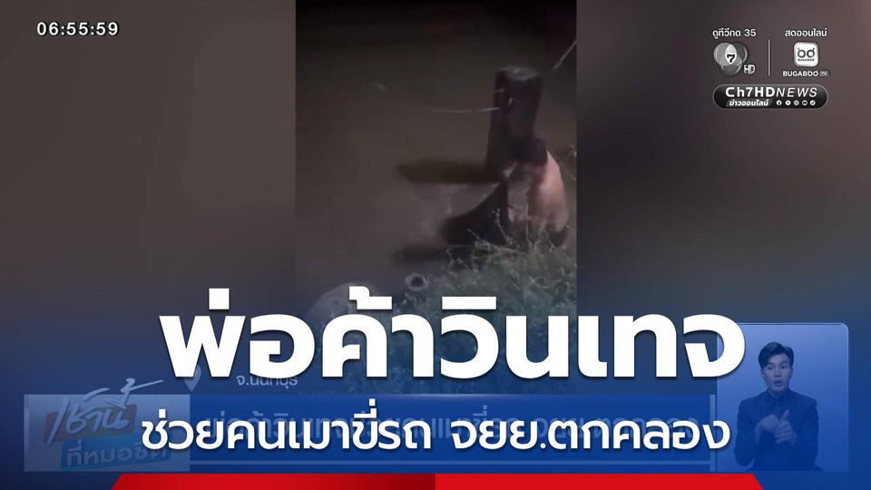 เช้านี้ที่หมอชิต - อีกเหตุระทึก เมื่อมีชายเมา ขี่รถจักรยานยนต์ตกคลอง แล้วหายวับลงน้ำไปเลย โชคยังดีมีพลเมืองดีที่ขับรถตามมาเห็น แล้วตัดสินใจลงไปช่วยขึ้นมาทัน