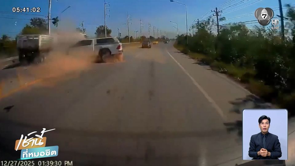 เช้านี้ที่หมอชิต - มีผู้โพสต์คลิปอุบัติเหตุรถกระบะชนกับรถบรรทุกพ่วงที่วิ่งมา บนถนนสุรนารายณ์ จังหวัดนครราชสีมา