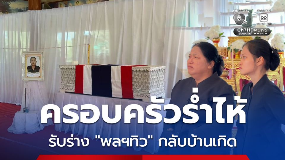 สุดจะกลั้น ครอบครัวและแฟนสาวร่ำไห้ หลังร่างพลทหารทิวตะวัน พลเยี่ยม ทหารกล้าพลีชีพเพื่อชาติ ถึงบ้านเกิด ท่ามกลางประชาชนที่มารอรับอย่างสมเกียรติ