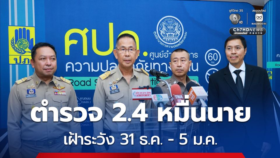เปิดศูนย์ 7 วันเฝ้าระวังอันตรายเทศกาลปีใหม่ 2569 ทุกภาคส่วนบูรณาการทำงาน เตรียมตำรวจ 24,000 นาย เข้มกฎหมาย ดูแลประชาชน