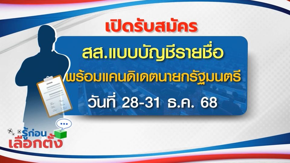 รู้ก่อนเลือกตั้ง 2569 : เปิดรับสมัคร สส.แบบบัญชีรายชื่อ พร้อมแคนดิเดตนายกรัฐมนตรี วันที่ 28-31 ธ.ค. 68