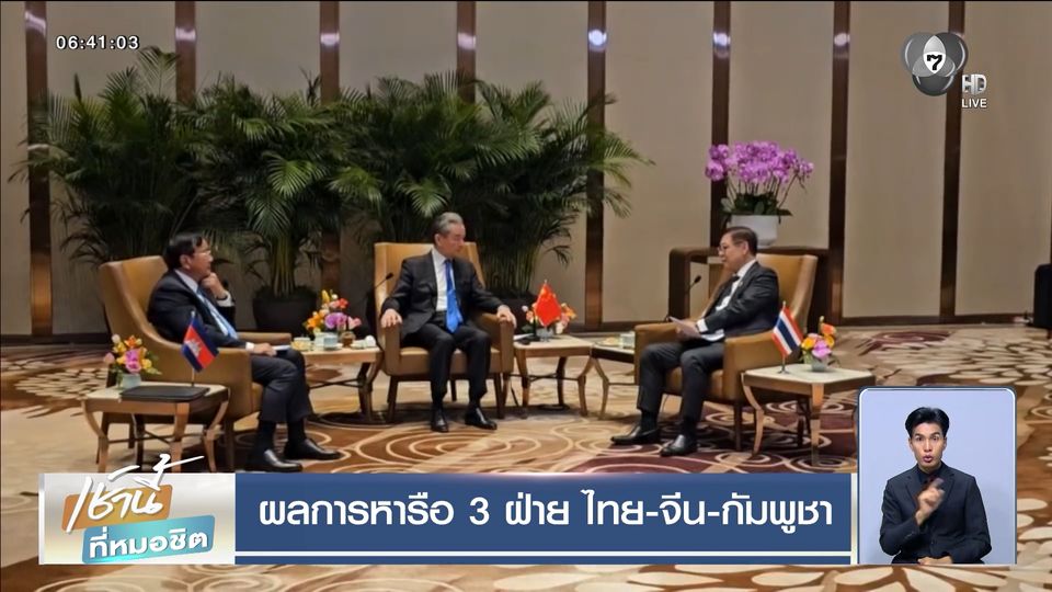 เช้านี้ที่หมอชิต - การประชุมไตรภาคีที่จีน เมื่อวานนี้ บรรลุผลตามคาดหวัง แก้ปัญหาชายแดนไทย-กัมพูชา เดินมาถูกทางแล้ว ย้ำจีนไม่ได้แทรกแซง แค่อำนวยความสะดวก