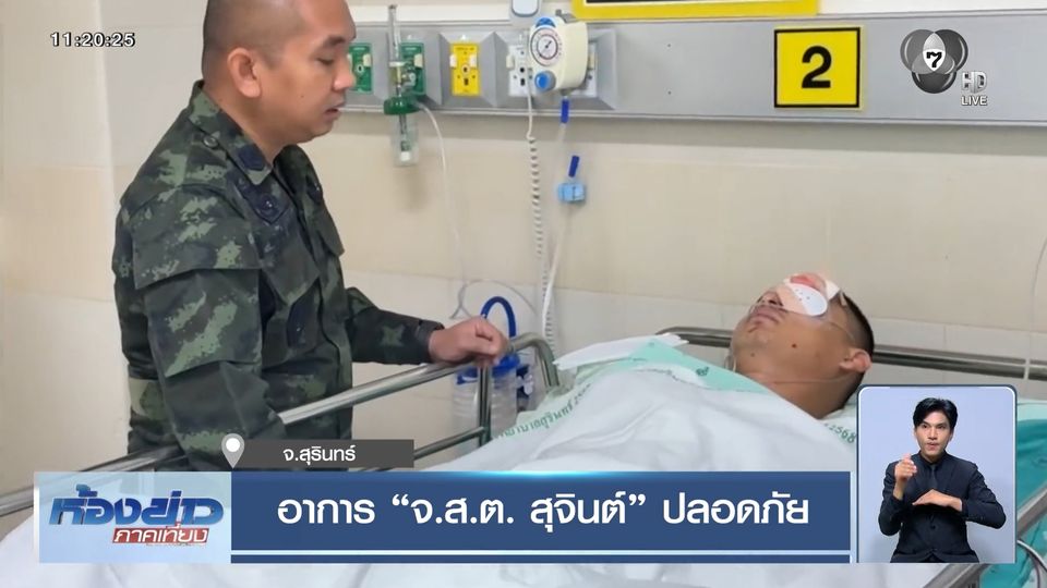 ห้องข่าวภาคเที่ยง - อาการของ จ่าสิบตรี สุจินต์ จิตกรียาน ที่เหยียบทุ่นระเบิดรายล่าสุด ปลอดภัยแล้ว หลังเข้าผ่าตัดเมื่อวาน ตอนนี้อยู่ระหว่างเฝ้าดูอาการอย่างใกล้ชิด