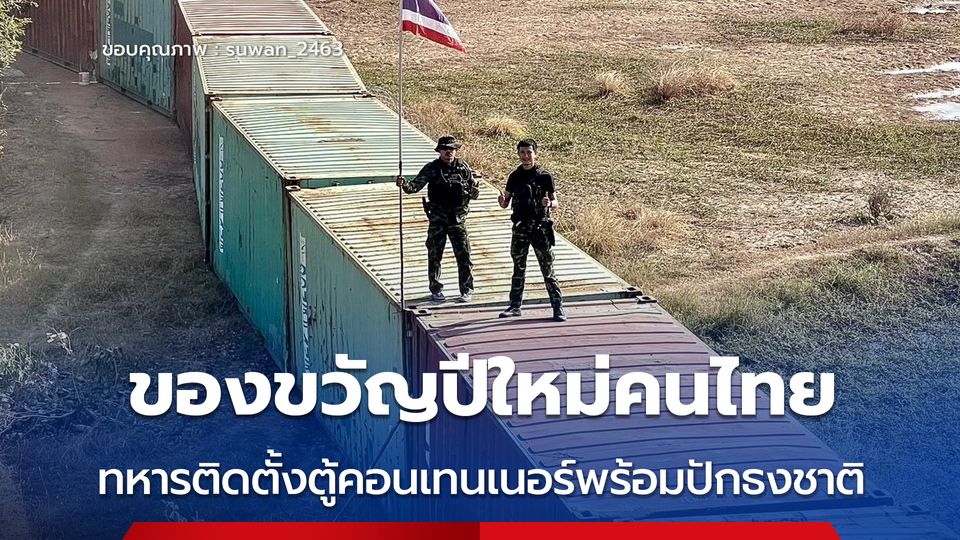 แนวรบบ้านหนองจาน จังหวัดสระแก้ว ทหารไทยได้วางแนวตู้คอนเทนเนอร์ ประกาศพื้นที่อธิปไตยได้อย่างเบ็ดเสร็จสมบูรณ์ พร้อมปักธงชาติไทย ให้ได้รู้นี่คือประเทศไทย เป็นของขวัญปีใหม่ให้คนไทยทั้งประเทศ