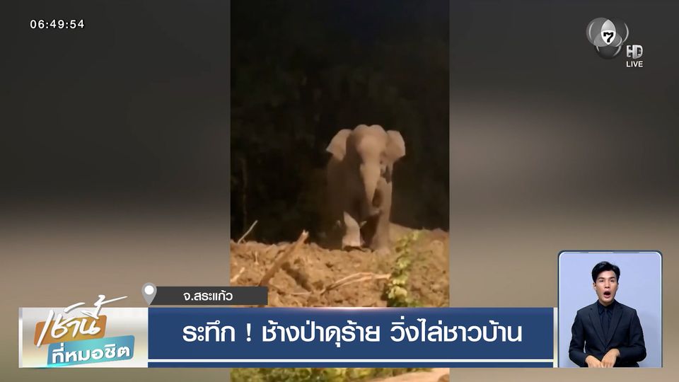 เช้านี้ที่หมอชิต - ระทึกกลางดึก ช้างป่าดุร้ายวิ่งไล่กวดชาวบ้าน ใกล้เขตรักษาพันธุ์สัตว์ป่าเขาอ่างฤาไน เจ้าหน้าที่เตือนผู้ขับขี่รถสัญจรผ่านเส้นทางโดยเฉพาะช่วงกลางคืน ต้องระวังอันตราย