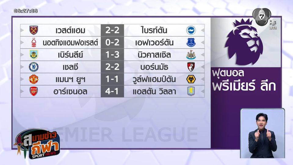 ผลฟุตบอลพรีเมียร์ลีก อังกฤษ