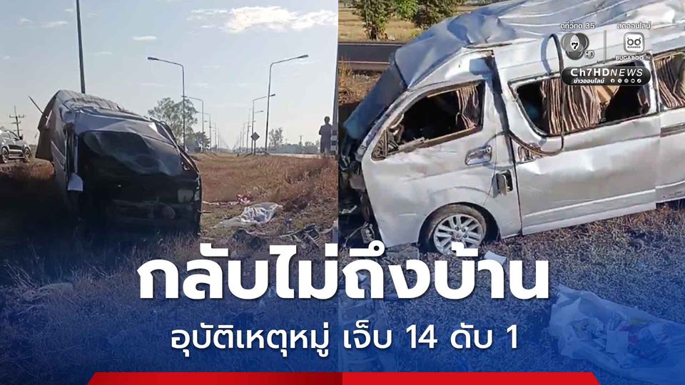 มหาสารคาม อุบัติเหตุหมู่วันส่งท้ายปีเก่า รถตู้เดินทางจาก กทม. ปลายทางศรีสะเกษ พุ่งชนเสาไฟส่องสว่าง เสียหลักพลิกคว่ำ บาดเจ็บ 14 เสียชีวิต 1 ย้ำเตือนผู้ขับขี่ เมาไม่ขับ ง่วงต้องหยุดพักรถ