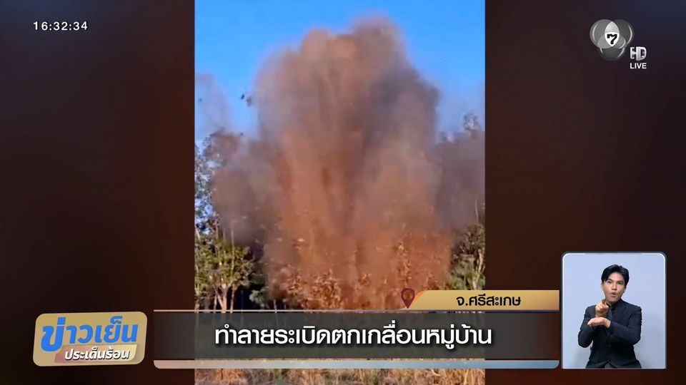 ข่าวเย็นประเด็นร้อน - เจ้าหน้าที่ชุด อีโออี เข้าเก็บกู้ทำลายวัตถุระเบิด ลูกกระสุนปืนใหญ่ และ บีเอ็ม 21 ตกกระจายเกลื่อนหมู่บ้านชายแดน ด้านจังหวัดศรีสะเกษ หลังหยุดยิง 72 ชั่วโมง