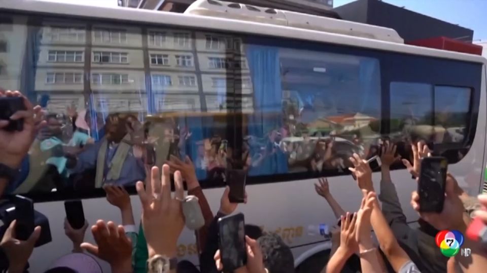 ชาวกัมพูชาจำนวนมาก ต้อนรับการกลับสู่บ้านเกิดของทหารกัมพูชา 18 นาย ที่ได้รับการปล่อยตัว เยี่ยงวีรบุรุษของชาติ