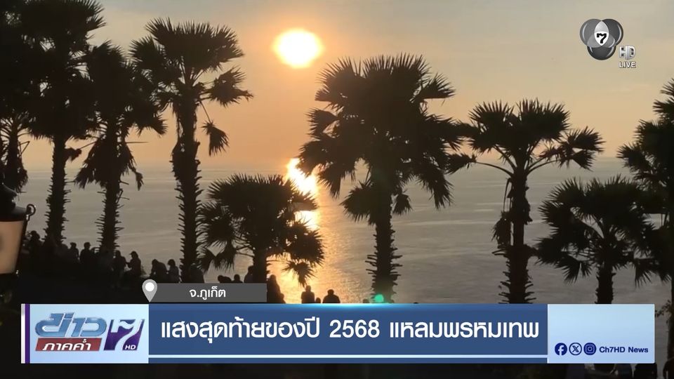 ข่าวภาคค่ำ - นักท่องเที่ยว เดินทางไปชมแสงสุดท้ายของปี 2568 ที่แหลมพรหมเทพ แลนด์มาร์กของจังหวัดภูเก็ต เก็บภาพแสงตะวันลับขอบฟ้า ที่สวยงาม ประทับใจส่งท้ายปี
